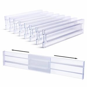 • ✔Make Everything Organized — These clear versatile drawer dividers trays are perfect for any place in your home. Fit all kinds of drawers, such as vanity / bathroom / kitchen / office drawers/ craft room, ideal for organizing cosmetics, makeup tools, hair accessories, jewelry, pins, office supply, craft supplies, utensils, etc.